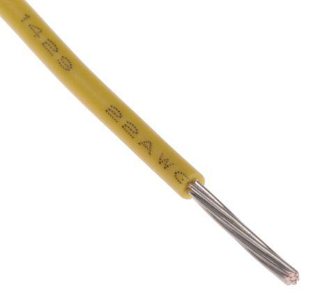 This is Yellow 100m XLPVC UL1429 Hook Up Wire Flame Retardant 150 V 22 AWG manufactured by RS Pro. The manufacturer part number is 877-5370. The insulated wall has 0.2mm thick. Features 22 awg - American Wire Gauge. Additionally, it contains 7 strands. The product complies with all safety standards, such as ul 1581, ul 758. Moreover, this cable has a single core shape. The conductor is made from tinned copper material. Its outer diameter is 1.28mm. The wire has a ul1429 style. The product has a flame retardant fire behaviour. The core strands are 7/0.25 mm. The sheath has an adorable yellow colour. The strand size includes 0.254 mm. Its accurate length is 100m. It has a robust xlpvc insulation material. Moreover, the product has a nominal 150 v voltage rating. It has a maximum operating temperature of +80°c. It comes in hookup wire configuration. The product has 0.33 mm² cross section area.