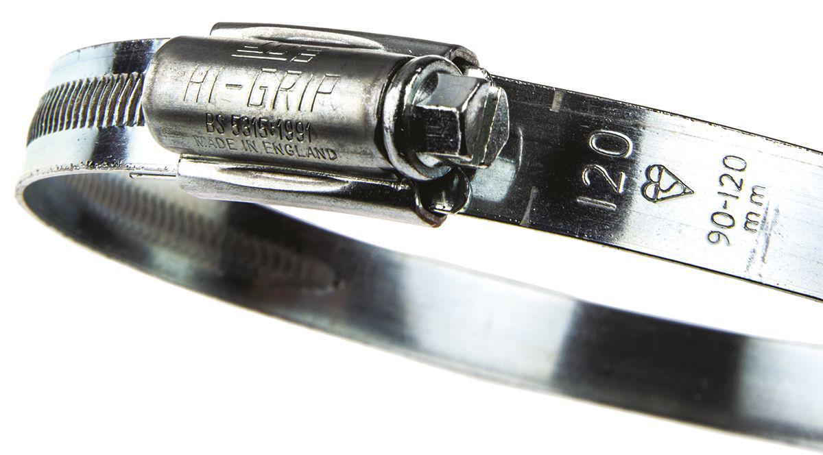 This is Steel Slotted Hex Hose Clip Worm Drive 13mm Band Width 90mm - 120mm Inside Diameter manufactured by HI-GRIP. The manufacturer part number is HGZ120BP. It has a standard 13mm band width . Moreover, its inside diameter is 90 → 120mm. The product is made from highly stable and reliable steel. Moreover, it has a minimum 90mm inside diameter . Moreover, it has a maximum 120mm inside diameter . This is a type of worm drive, allowing user-desired applications. It includes a slotted hex head .