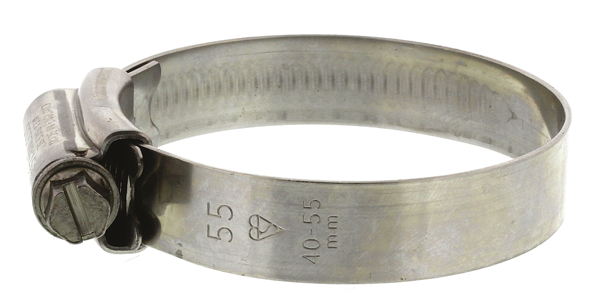 This is Stainless Steel Slotted Hex Hose Clip Worm Drive 13mm Band Width 40mm - 55mm Inside Diameter manufactured by HI-GRIP. The manufacturer part number is HGS55BP. The stainless steel is a a2 304. It has a standard 13mm band width . Moreover, its inside diameter is 40 → 55mm. The product is made from highly stable and reliable stainless steel. Moreover, it has a minimum 40mm inside diameter . Moreover, it has a maximum 55mm inside diameter . This is a type of worm drive, allowing user-desired applications. It includes a slotted hex head .