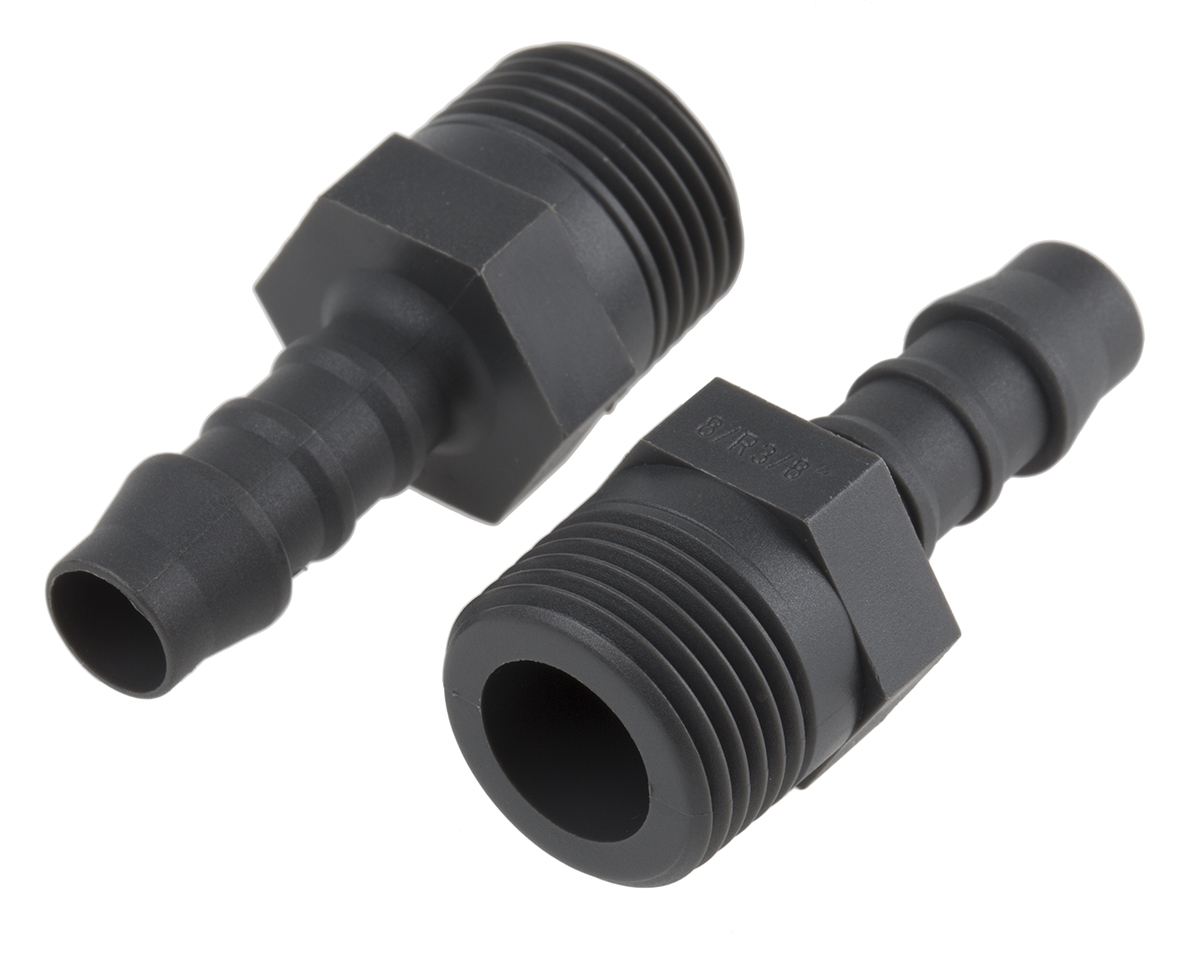 This is Straight Male Hose Coupling 3/8in 3/8 in BSP Male nylon manufactured by RS Pro. The manufacturer part number is 795-152. In addition, its coupling connector direction is straight . The threaded is a bsp standard. Moreover, it has a standard 8mm inner hose diameter . It has a typical thread size of 3/8in. The product has a/an hose tail adaptor type hose connector . The product's body is nicely designed from nylon materials. The connector is of male gender .