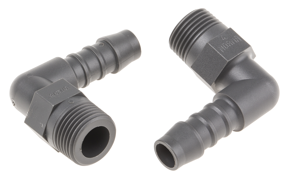 This is Elbow Male Hose Coupling 3/8in 3/8 in BSP Male nylon manufactured by RS Pro. The manufacturer part number is 795-297. In addition, its coupling connector direction is elbow . The threaded is a bsp standard. Moreover, it has a standard 10mm inner hose diameter . It has a typical thread size of 3/8in. The product has a/an hose tail adaptor type hose connector . The product's body is nicely designed from nylon materials. The connector is of male gender .