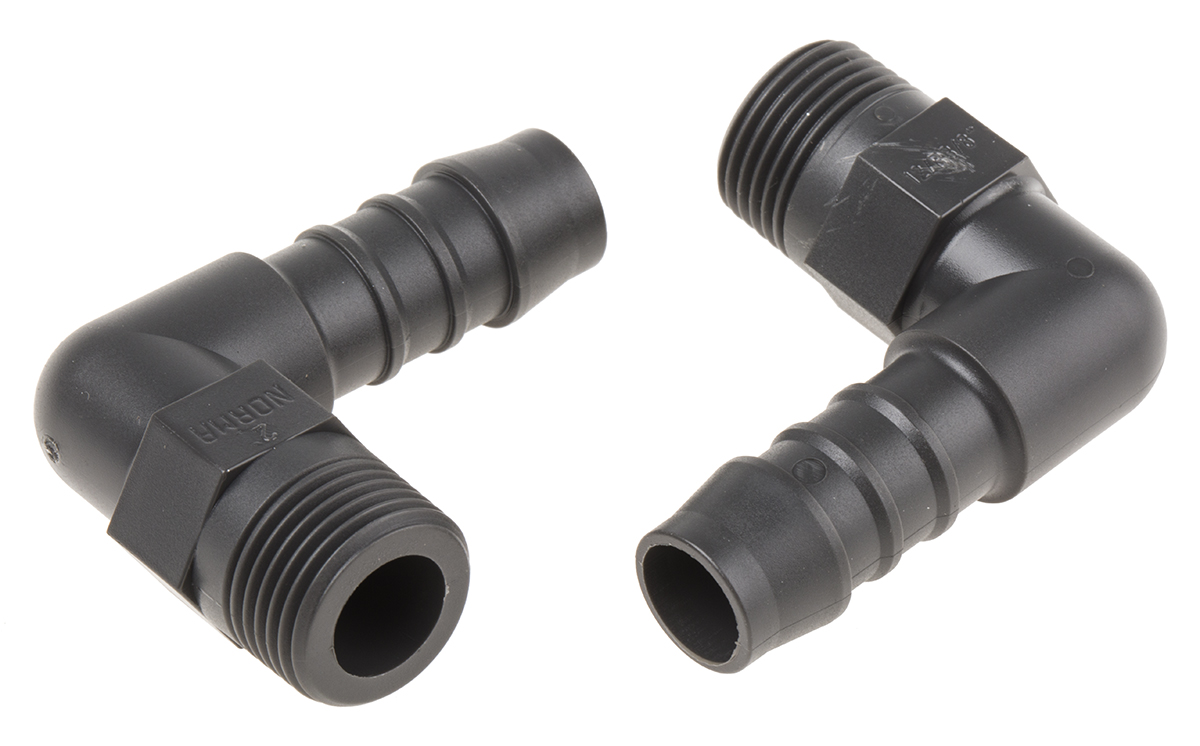 This is Elbow Male Hose Coupling 3/8in 3/8 in BSP Male nylon manufactured by RS Pro. The manufacturer part number is 795-304. In addition, its coupling connector direction is elbow . The threaded is a bsp standard. Moreover, it has a standard 12mm inner hose diameter . It has a typical thread size of 3/8in. The product has a/an hose tail adaptor type hose connector . The product's body is nicely designed from nylon materials. The connector is of male gender .