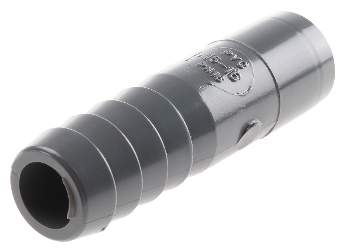 This is Straight PVC-U Hose Coupler 16mm x 16mm L.57mm manufactured by Georg Fischer. The manufacturer part number is 721960405.