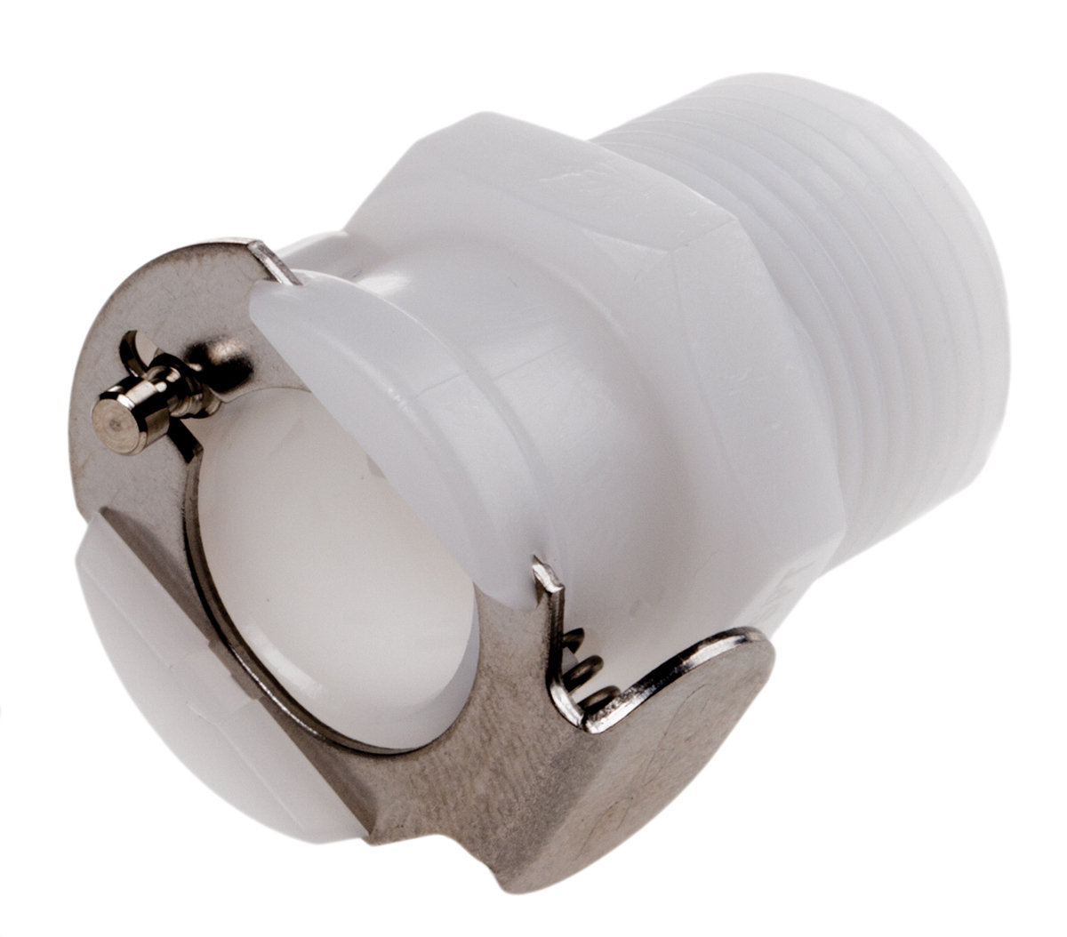 This is Straight Male Hose Coupling 3/8in Coupling Body - Valved Thread Mount 3/8 in R Male Acetal manufactured by Colder Products. The manufacturer part number is PLCD10006BSPT. The product has a/an threaded coupling type hose connector . It is valved yes . In addition, its coupling connector direction is straight . It has a typical thread size of 3/8in. The threaded is a bspt standard. The product's body is nicely designed from acetal materials. It provides up to 8.3 bar maximum working pressure. The connector is of male gender .