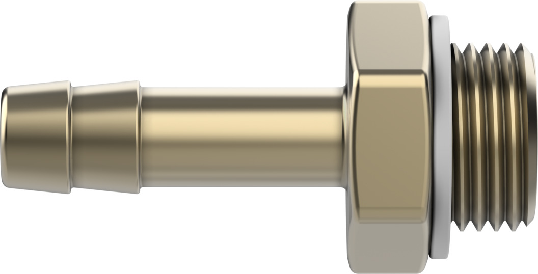 This is Hose Barb manufactured by Festo. The manufacturer part number is N-1/4-P-9-MS. In addition, its coupling connector direction is straight . The threaded is a g standard. It has a typical thread size of 1/4in. It provides up to 16 bar maximum working pressure. The product's body is nicely designed from brass materials. The connector is of male gender .