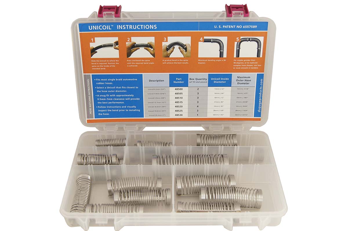 This is 231mm Long Stainless Steel Hose Protector manufactured by Unicoil. The manufacturer part number is 48599. Its accurate length is 231mm. The product is made from highly stable and reliable stainless steel. Its outer diameter is 13 mm, 16 mm, 18 mm, 21 mm, 24 mm, 28 mm, 36mm. The inner diameter of the product is 13 mm, 16 mm, 18 mm, 21 mm, 24 mm, 28 mm, 36mm.