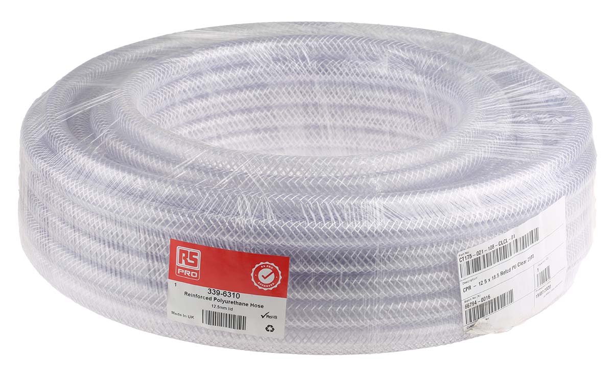 This is PUR Flexible Tubing transparent 18.5mm External Diameter 25m Long Reinforced 110mm Bend Radius manufactured by RS Pro. The manufacturer part number is 339-6310. The product complies with all safety standards, such as iso 5774. It provides up to 7 bar maximum working pressure. It has a maximum operating temperature of +65°c. It has a decent clear colour. The product is made from highly stable and reliable pur. Whereas, the minimum operating temperature of the product is -40°c. Its accurate length is 25m. Features a 110mm bend radius. The inner diameter of the product is 12.5mm. Its hose pipe action is transfer . Its outer diameter is 18.5mm. Furthermore, it is suitable for fuel & oil applications . It is reinforced yes .