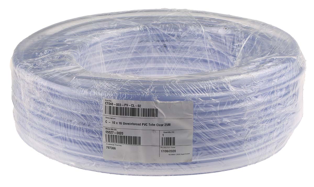 This is PVC Flexible Tubing transparent 16mm External Diameter 25m Long 144mm Bend Radius Applications Various manufactured by RS Pro. The manufacturer part number is 797-366. The product complies with all safety standards, such as eu 10/2011. It provides up to 4 bar maximum working pressure. It has a maximum operating temperature of +60°c. It has a decent clear colour. The product is made from highly stable and reliable pvc. Whereas, the minimum operating temperature of the product is -15°c. Its accurate length is 25m. Features a 144mm bend radius. The inner diameter of the product is 10mm. Its hose pipe action is transfer . Its outer diameter is 16mm. Furthermore, it is suitable for laboratory applications . It is reinforced no .