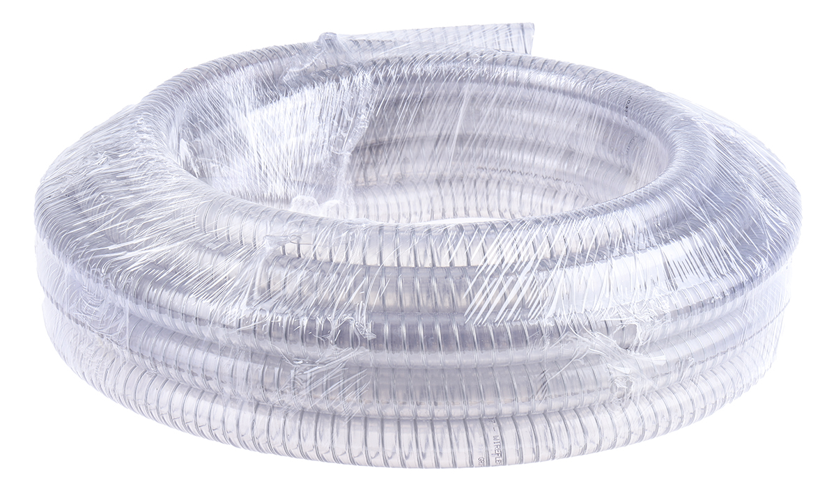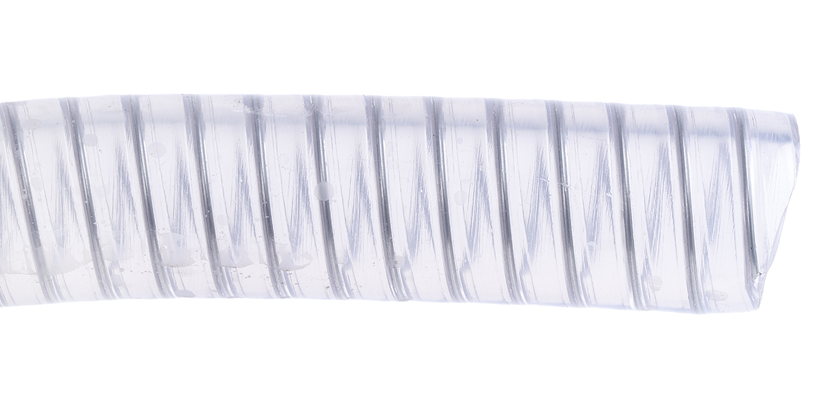 This is PVC 10m Long Clear Hose Reinforced 38 (Minimum)mm Bend Radius manufactured by RS Pro. The manufacturer part number is 136-9497. The product is made from highly stable and reliable pvc. The product complies with all safety standards, such as eu food, fda. It provides up to 7.5 bar maximum working pressure. It has a maximum operating temperature of +55°c. It has a decent clear colour. It is designed for food grade yes . Its hose pipe action is transfer, vacuum . Whereas, the minimum operating temperature of the product is -10°c. Its accurate length is 10m. Features a 45mm bend radius. The inner diameter of the product is 19mm. It is flexible yes . Its outer diameter is 26mm. Furthermore, it is suitable for industrial applications . It is reinforced yes .