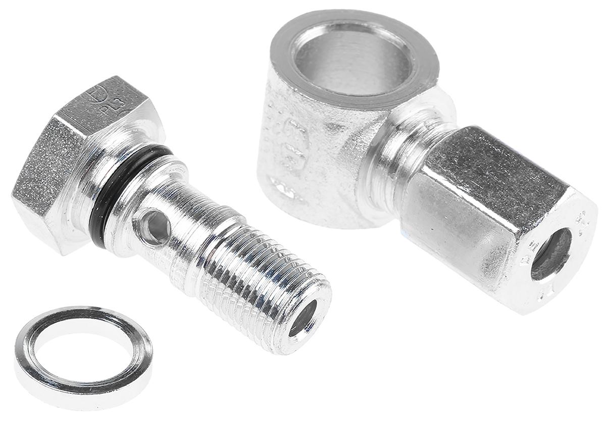 This is BSP 1/8 Hydraulic Banjo Compression Tube Fitting 315 bar Max Operating Pressure manufactured by Parker. The manufacturer part number is WH06LRCF. A quality product with a nice zinc plated finish. It features 250bar maximum operating pressure. It has a maximum operating temperature of +100°c. The product is made from highly stable and reliable steel. Whereas, the minimum operating temperature of the product is -30°c. Its connector is of g thread standard . Its hydraulic fitting is of hydraulic banjo compression tube fitting type . It has a standard connector A of 1/8in thread size .