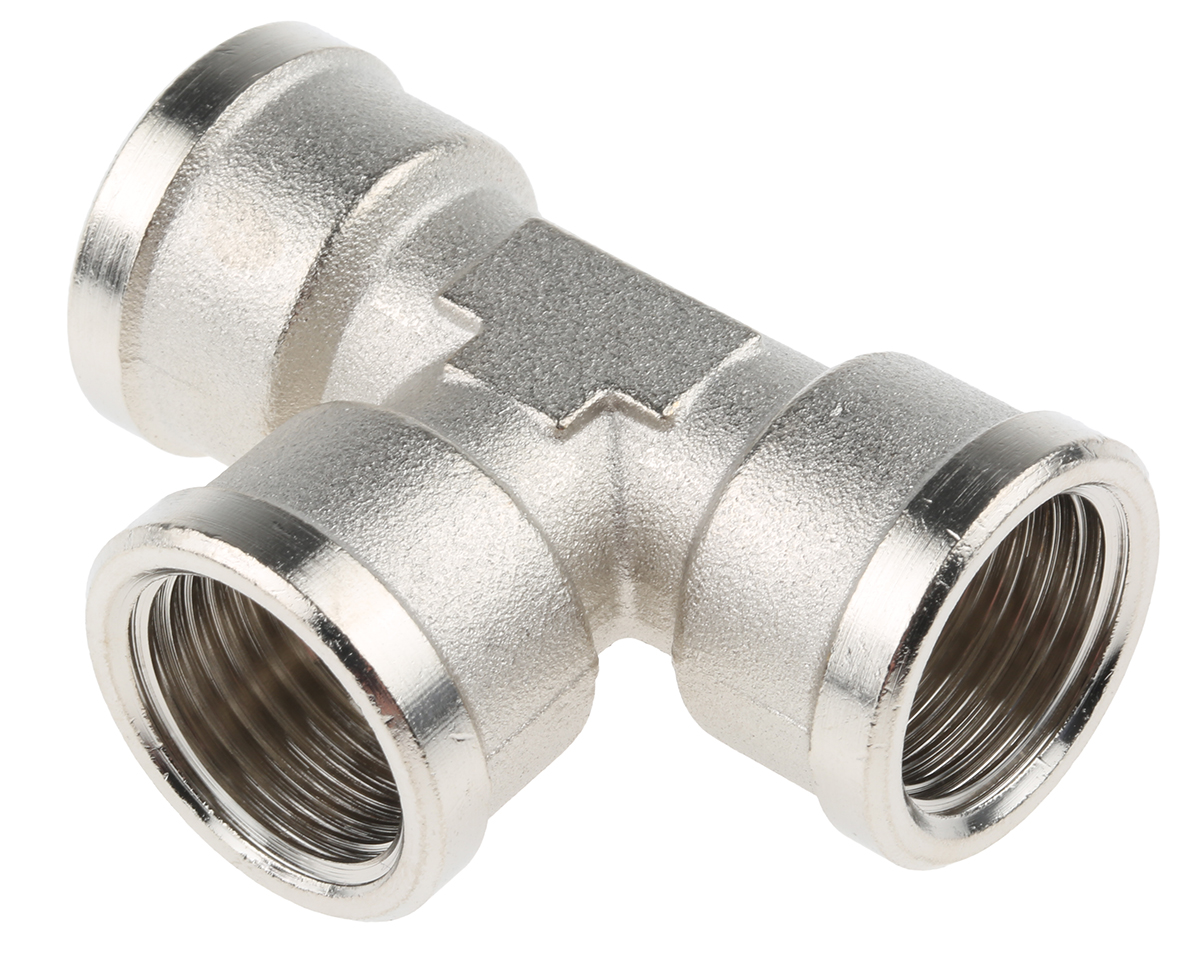 This is Hydraulic Tee Threaded Adapter Connector A G 1/2 Female Connector B G 1/2 Female manufactured by Legris. The manufacturer part number is 0915 00 21. A quality product with a nice nickel plated finish. Whereas, the minimum operating temperature of the product is -20°c. It features 60bar maximum operating pressure. While the connector B is g 1/2 female. The connector A is g 1/2 female connector. It has a maximum operating temperature of +120°c.