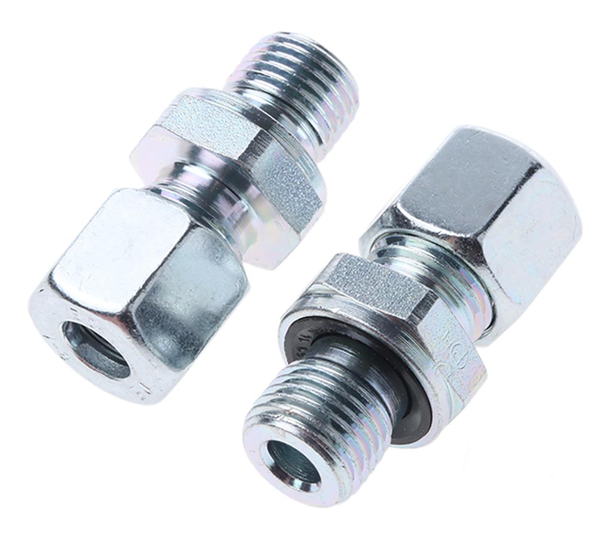 This is Pneumatic Banjo Threaded-to-Tube Adapter Push In 8 mm Tube 250 bar manufactured by Parker. The manufacturer part number is GE08LREDCF. A quality product with a nice zinc plated finish. The product is made from highly stable and reliable steel. It features 500bar maximum operating pressure. While the connector B is push in 8 mm. It has a maximum operating temperature of +120°c. The connector A is g 1/4 connector. Whereas, the minimum operating temperature of the product is -40°c. Its connector is of g thread standard . Its hydraulic fitting is of hydraulic male stud type .