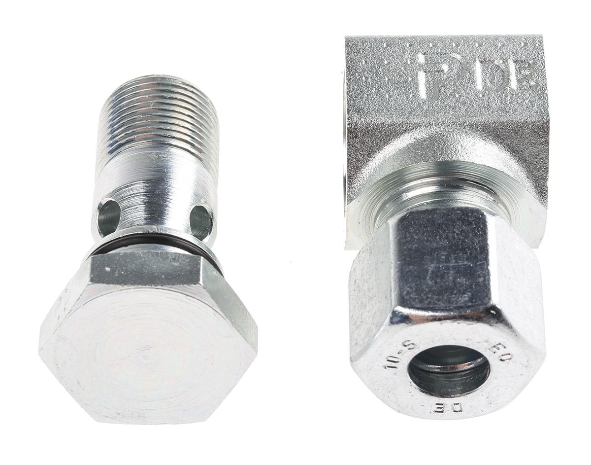 This is G 3/8 Hydraulic Banjo Compression Tube Fitting 400 bar Max Operating Pressure manufactured by Parker. The manufacturer part number is WH10SRCF. A quality product with a nice zinc plated finish. The product is made from highly stable and reliable steel. It features 315bar maximum operating pressure. It has a maximum operating temperature of +100°c. The connector A is g 3/8 connector. Whereas, the minimum operating temperature of the product is -30°c. Its connector is of g thread standard . Its hydraulic fitting is of hydraulic banjo compression tube fitting type . It has a standard connector A of 3/8in thread size .
