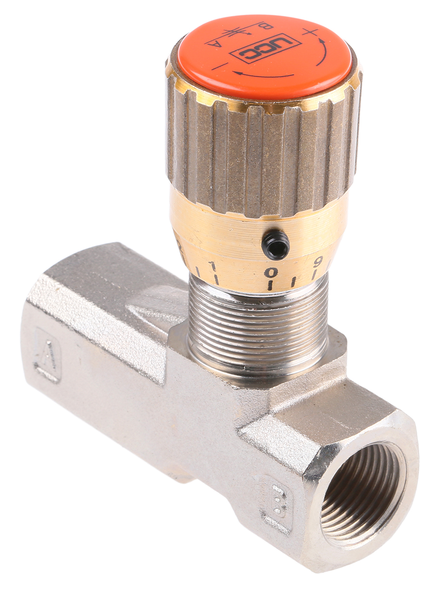 This is Line Mounting Hydraulic Flow Control Valve G 3/8 210 bar manufactured by Parker. The manufacturer part number is 2001. It features 210bar maximum operating pressure. The product is available in inline configuration. The threaded is a g standard. It also features g 3/8 connection port thread. It has a typical thread size of 3/8in. The product provides up to 3l/min maximum flow rate. The product's body is nicely designed from nickel plated brass materials. Whereas, the minimum operating temperature of the product is -20°c. Its seal is made using nitrile rubber material . It has a maximum operating temperature of +100°c.
