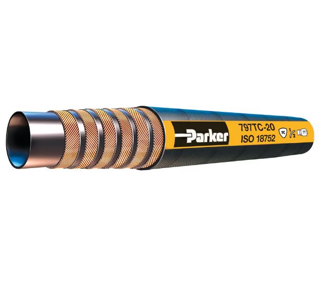 This is Synthetic Rubber Hydraulic Hose Assembly 420 bar Max Pressure manufactured by Parker. The manufacturer part number is 797TC-8. Whereas, the minimum operating temperature of the product is -40°f. It features 420 bar maximum operating pressure. Its cover is made up of [Cleanroom] material . The connector A is 1/2 in hose connector. It has steel reinforcing material . Moreover, it has a [Folding] inner hose material . The product has 21.1mm external diameter. It has a maximum operating temperature of +125°c. Moreover, its inside diameter is 12.7mm.