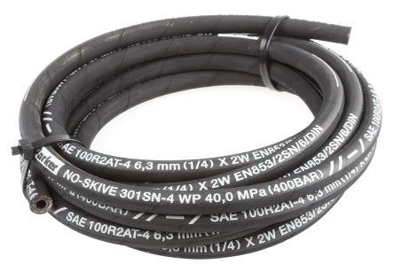 This is 5m Rubber Cover Hydraulic Hose 400 bar manufactured by Parker. The manufacturer part number is 381-4. It has a standard 15.1mm hose outside diameter . It features 400 bar maximum operating pressure. Its cover is made up of [Cleanroom] material . Moreover, it has a [Folding] inner hose material . Its accurate length is 5m. The product has a 381 manufacturer series. Whereas, the minimum operating temperature of the product is -40°c. It has a maximum operating temperature of +100°c. It has steel reinforcing material .
