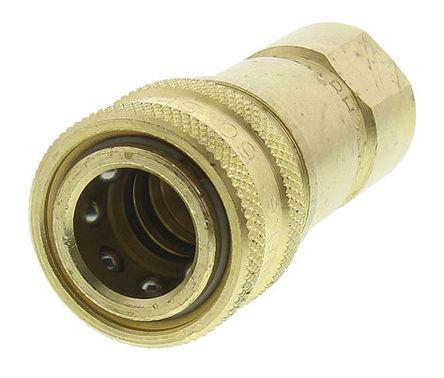 This is Brass Female Hydraulic Quick Connect Coupling 1 in manufactured by Parker. The manufacturer part number is BH8-60BSPP. It has a female gender thread . A quality product with a nice yellow chromated, zinc plated finish. It features 105 bar maximum operating pressure. It has a standard g 1 female thread . The threaded is a g standard. The product 60, is a highly preferred choice for users. The product is made from highly stable and reliable brass. Furthermore, it is compatible with cejn 320/410, iso 7241-1-b, rectus 25/27 . It coupling is of female gender . It has a typical thread size of 1in. It has a ball lock style locking . Whereas, the minimum operating temperature of the product is -40°c. Its seal is made using nitrile rubber material . It comes in union configuration. It has a maximum operating temperature of +80°c.