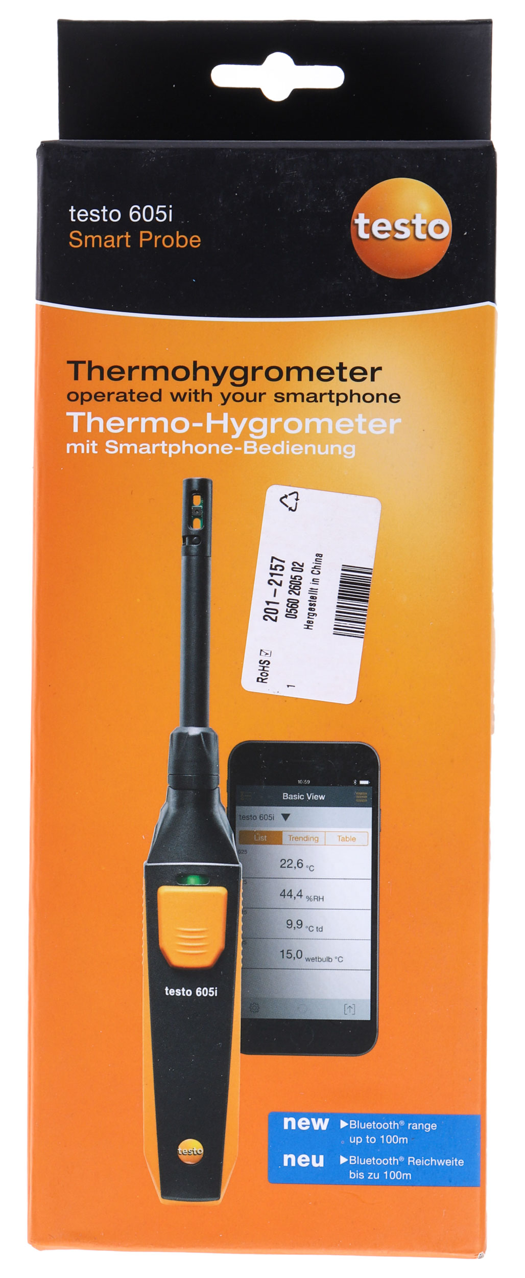 This is 605i Thermohygrometer Max Humidity 100%RH manufactured by Testo. The manufacturer part number is 0560 2605 02. It has a digital hygrometer . It has a maximum operating temperature of 50°c. It has a dew point measurement feature yes . It has a model number 605i. In addition, the height is 25mm. Furthermore, the product is 30 mm wide. Its accurate length is 218mm. Its battery life is about 150h . Whereas, the minimum operating temperature of the product is -20°c. This aaa battery is comparatively much efficient than common batteries. hygrometer is a versatile product designed to provide user-defined applications. Additionally, it has a maximum 100%rh humidity measurement . Additionally, it has a maximum 60°c temperature measurement .