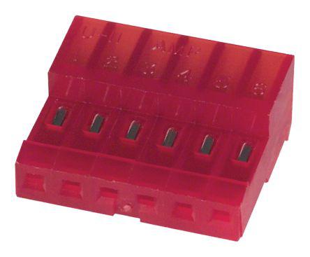 This is MTA-100 Series 2.54mm Pitch Cable Mount IDC Connector Socket 6 Way 1 Row manufactured by TE Connectivity. The manufacturer part number is 640440-6. The product has a current rating of 5a. Whereas, the minimum operating temperature of the product is -55°c. The product is available in cable mount configuration. Moreover, the product has a nominal 250 v ac voltage rating. In addition, female is the available "Gender" of the product. It has straight body orientation. Moreover, the product is 2.54mm. It allows idc termination method. The product also features robust glass fibre reinforced nylon housing material. It comes in 1 of rows. The high-quality gold over nickel, tin is used as contact plating material. The product mta-100, is a highly preferred choice for users. The product contains 6 contacts. It has a maximum operating temperature of +105°c. The product is made from sturdy phosphor bronze materials.