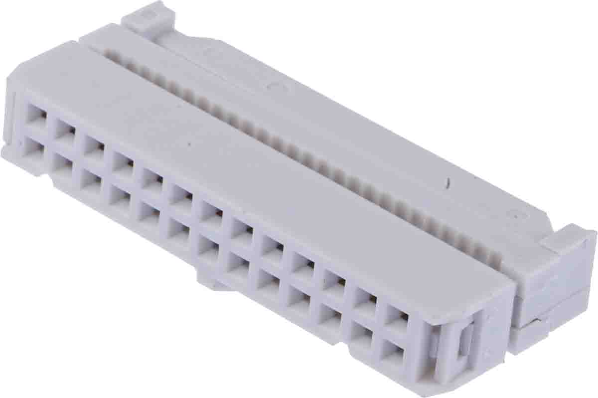 This is 2.54mm Pitch Right Angle Cable Mount IDC Connector Socket 26 Way 2 Row manufactured by RS Pro. The manufacturer part number is 625-7404. The product has a current rating of 1a. Whereas, the minimum operating temperature of the product is -55.0°c. The product is available in cable mount configuration. In addition, female is the available "Gender" of the product. It has right angle body orientation. It allows idc termination method. The product also features robust pbt housing material. It comes in 2 of rows. The high-quality gold over nickel is used as contact plating material. Moreover, the product is 2.54mm. The product contains 26 contacts. It has a maximum operating temperature of 105.0°c. The product is made from sturdy phosphor bronze materials.