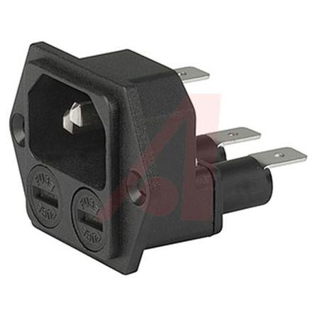 This is C14 C18 Screw Mount IEC Connector manufactured by Schurter. The manufacturer part number is 4707.2300. Fuses included 2 . The product has a current rating of 10.0a. The product is available in panel mount configuration. Moreover, the product has a nominal 250.0 v voltage rating. In addition, male is the available "Gender" of the product. It has straight body orientation. A fuse with a 5 x 20mm size. Additionally, it has a/an c14, c18 type IEC connector . It allows solder termination method. Quality product with a 2 pole switch type.