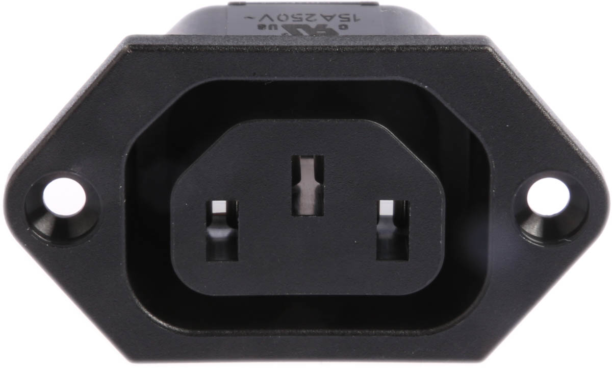 This is C13 Panel Mount IEC Socket manufactured by Schurter. The manufacturer part number is 6600.3300. The product has a current rating of 15a. The product is available in panel mount configuration. Moreover, the product has a nominal 250 v voltage rating. In addition, female is the available "Gender" of the product. It has straight body orientation. Additionally, it has a/an c13 type IEC connector .