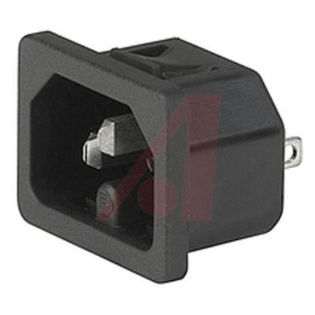 This is C16 Snap-In IEC Connector manufactured by Schurter. The manufacturer part number is 6110.4215. The product has a current rating of 10.0 a, 15.0a. The product is available in snap-in configuration. Moreover, the product has a nominal 250.0 v voltage rating. In addition, male is the available "Gender" of the product. It has straight body orientation. Fuses included none . Additionally, it has a/an c16 type IEC connector . It allows quick connect termination method. Quality product with a none switch type.