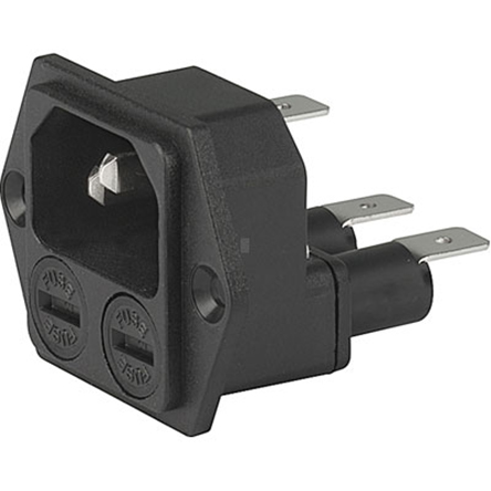 This is C14 C18 IEC Connector manufactured by Schurter. The manufacturer part number is 4707.2000. Fuses included 2 . The product has a current rating of 10a. The product is available in panel mount configuration. Moreover, the product has a nominal 250 v voltage rating. In addition, male is the available "Gender" of the product. It has straight body orientation. A fuse with a 5 x 20mm size. Additionally, it has a/an c14, c18 type IEC connector . It allows quick connect termination method. Quality product with a 2 pole switch type.