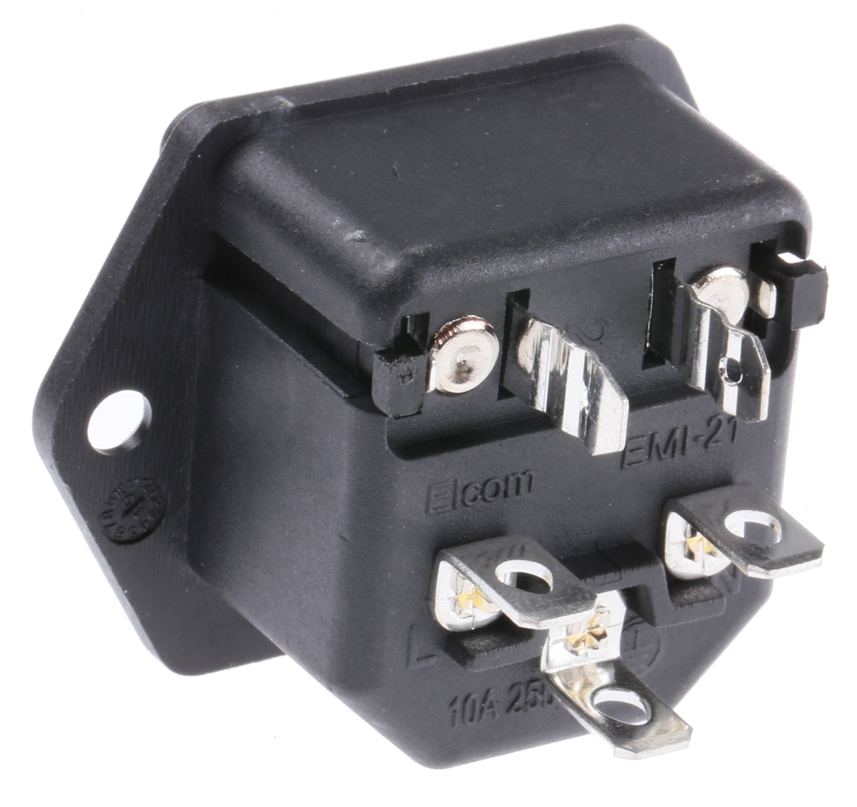This is C14 Screw Mount IEC Plug manufactured by RS Pro. The manufacturer part number is 811-7213. Fuses included 1 . The product has a current rating of 10a. The product is available in panel mount configuration. Moreover, the product has a nominal 250 v voltage rating. In addition, male is the available "Gender" of the product. It has straight body orientation. A fuse with a 5 x 20mm size. Additionally, it has a/an c14 type IEC connector . It allows solder/faston termination method. Quality product with a none switch type.