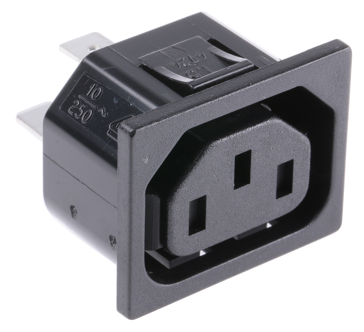 This is C13 Snap-In IEC Socket manufactured by Schurter. The manufacturer part number is 4724.0000. The product has a current rating of 15a. The product is available in snap-in configuration. Moreover, the product has a nominal 250 v voltage rating. In addition, female is the available "Gender" of the product. It has straight body orientation. Additionally, it has a/an c13 type IEC connector . It allows solder termination method.