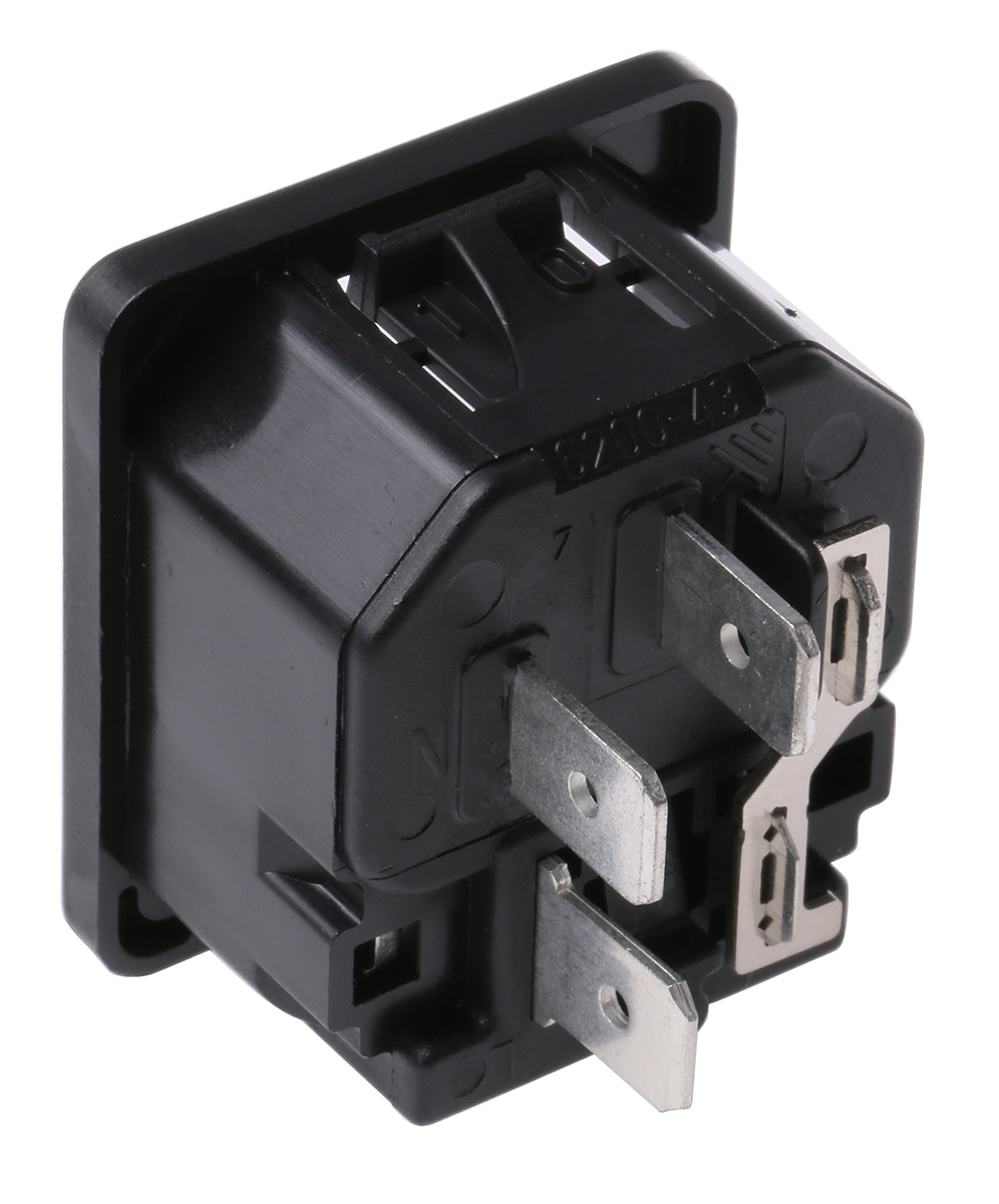This is C14 Snap-In IEC Plug manufactured by Schurter. The manufacturer part number is 6200.4310. The product has a current rating of 10a. The product is available in snap-in configuration. Moreover, the product has a nominal 250 v voltage rating. In addition, male is the available "Gender" of the product. It has straight body orientation. Additionally, it has a/an c14 type IEC connector .