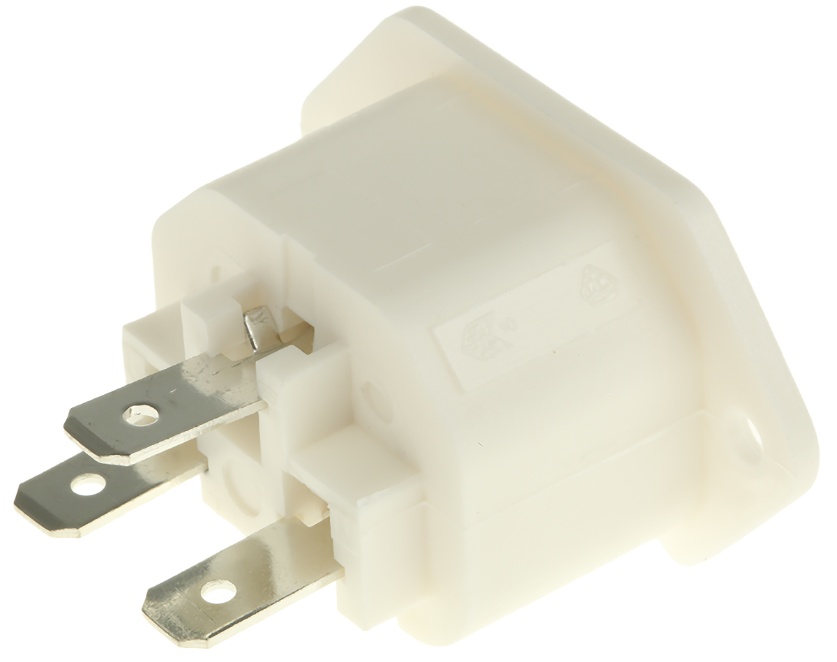 This is C13 IEC Socket manufactured by Bulgin. The manufacturer part number is PX0793/63/WH. The product has a current rating of 10a. The product complies with all safety standards, such as csa certified, imq, ul listed, vde. The product is available in panel mount configuration. Moreover, the product has a nominal 250 v voltage rating. In addition, female is the available "Gender" of the product. It has straight body orientation. Fuses included none . It is shuttered yes . Additionally, it has a/an c13 type IEC connector . It allows quick connect termination method.