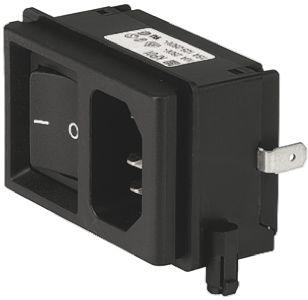 This is C14 IEC Plug manufactured by Schurter. The manufacturer part number is KP01-1112-11. The product has a current rating of 10a. The product is available in through hole configuration. Moreover, the product has a nominal 250 v ac voltage rating. In addition, male is the available "Gender" of the product. It has right angle body orientation. Additionally, it has a/an c14 type IEC connector . It allows solder termination method.