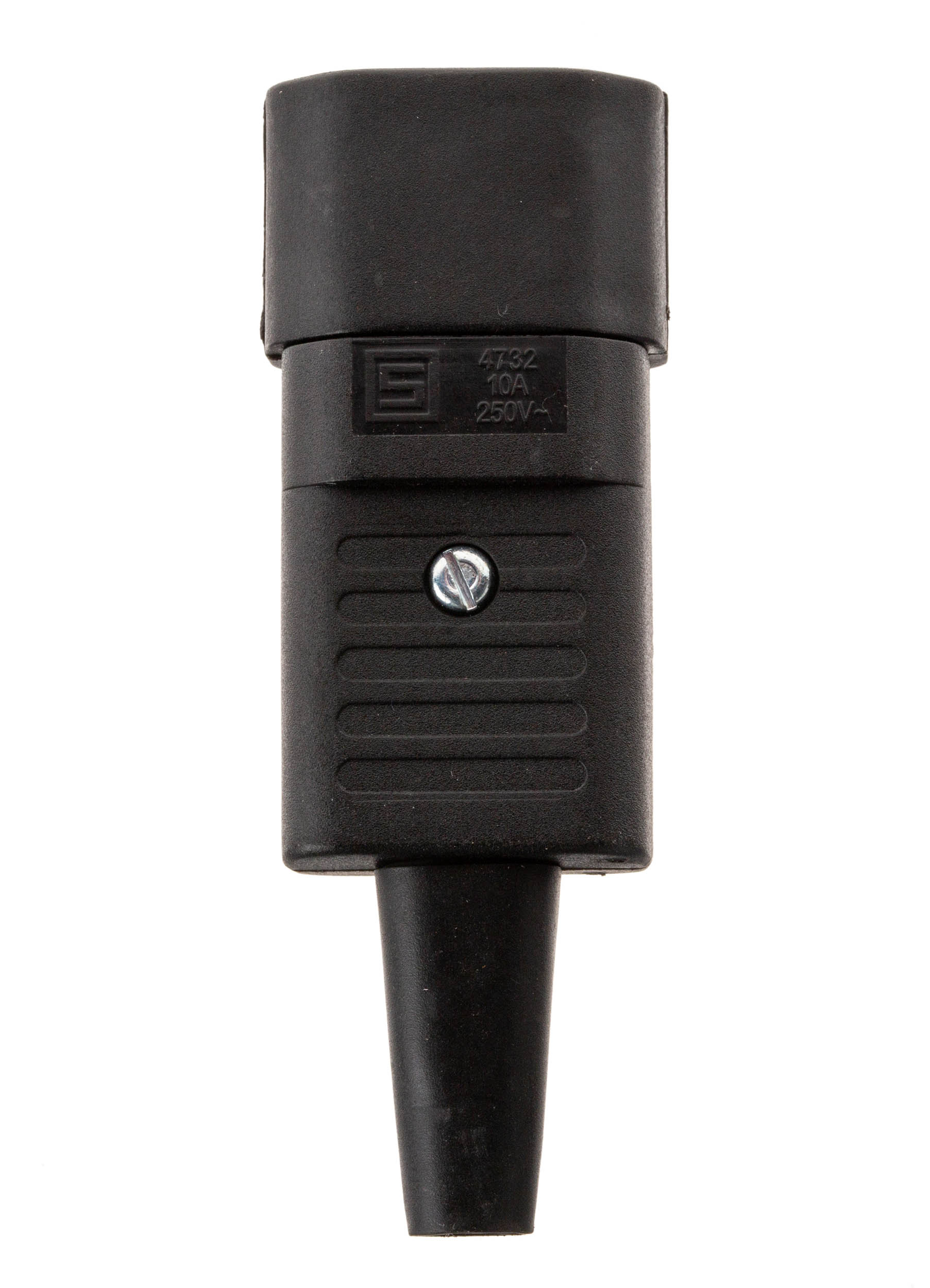 This is C14 IEC Plug manufactured by Schurter. The manufacturer part number is 4732.0000. The product has a current rating of 10a. The product is available in cable mount configuration. Moreover, the product has a nominal 250 v voltage rating. In addition, male is the available "Gender" of the product. It has straight body orientation. It allows screw termination method. Additionally, it has a/an c14 type IEC connector .