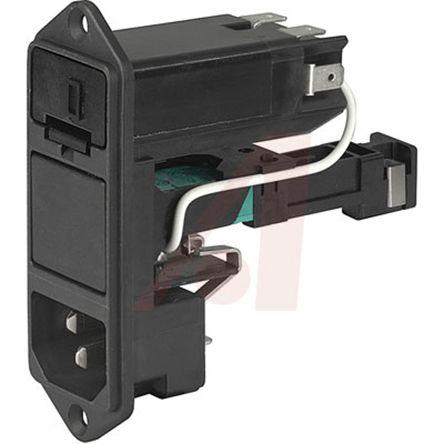 This is C14 Screw Mount IEC Connector Male 10A 125 V ac 250 V ac Fuse Size 5 x 20 mm 6.3 x 32 mm manufactured by Schurter. The manufacturer part number is KD14.4199.151. Fuses included 2 . The product has a current rating of 10a. The product is available in screw mount configuration. Moreover, the product has a nominal 125 v ac, 250 v ac voltage rating. In addition, male is the available "Gender" of the product. It has straight body orientation. A fuse with a 5 x 20 mm, 6.3 x 32 mm size. Additionally, it has a/an c14 type IEC connector . It allows quick connect termination method. Quality product with a 2 pole switch type.