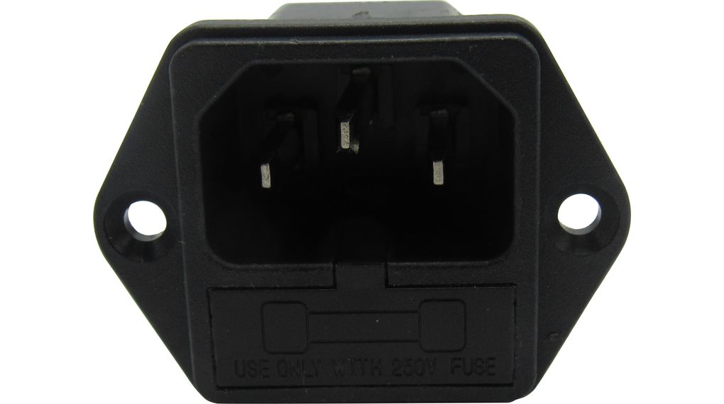 This is C14 Panel Mount IEC Connector Plug 10A 250 V ac manufactured by RND. The manufacturer part number is RND 465-00774. The product has a current rating of 10a. The product is available in panel mount configuration. Moreover, the product has a nominal 250 v ac voltage rating. In addition, plug is the available "Gender" of the product. It has straight body orientation. Additionally, it has a/an c14 type IEC connector .