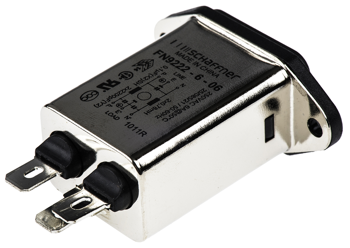 This is Male C14 IEC Filter Panel MountfastonRated At 6A250 V ac Operating Frequency 0 → 400Hz manufactured by Schaffner. The manufacturer part number is FN9222-6-06. The product has a current rating of 6a. The product is available in panel mount configuration. Moreover, the product has a nominal 250 v ac voltage rating. In addition, male is the available "Gender" of the product. Fuses included none . In addition, the height is 22.5mm. Furthermore, the product is 48mm wide. The product comes in 57.9mm depth. Additionally, it has a/an c14 type IEC connector . It allows faston termination method. Furthermore, the product has 0 → 400hz operating frequency range.
