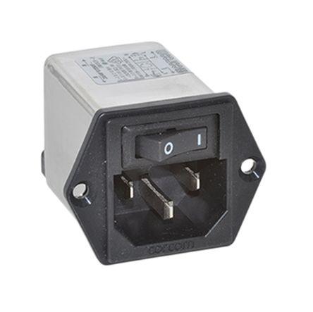 This is Male C14 IEC Filter Flange MountSpadeRated At 10A120 V ac 250 V ac Operating Frequency 50/60Hz manufactured by TE Connectivity. The manufacturer part number is 10CUFE1. The product has a current rating of 10a. The product is available in flange mount configuration. Moreover, the product has a nominal 120 v ac, 250 v ac voltage rating. In addition, male is the available "Gender" of the product. Fuses included none . In addition, the height is 34.1mm. Furthermore, the product is 43.9mm wide. The product comes in 44.5mm depth. Additionally, it has a/an c14 type IEC connector . It allows spade termination method. Furthermore, the product has 50/60hz operating frequency range. Quality product with a 1 pole switch type.