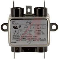 This is Filter EMI; 10 A (RMS) (Max.) @ 250 VAC; 2250 VDC (Line to Ground); 115/250 manufactured by Qualtek Electronics. The manufacturer part number is 851-10/007.