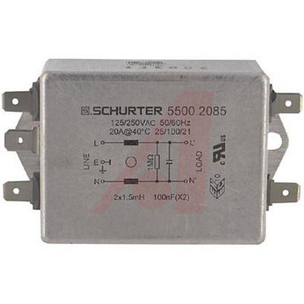 This is Filter 20 A @ 40°C 2x14mH 25V AC manufactured by Schurter. The manufacturer part number is 5500.2085.
