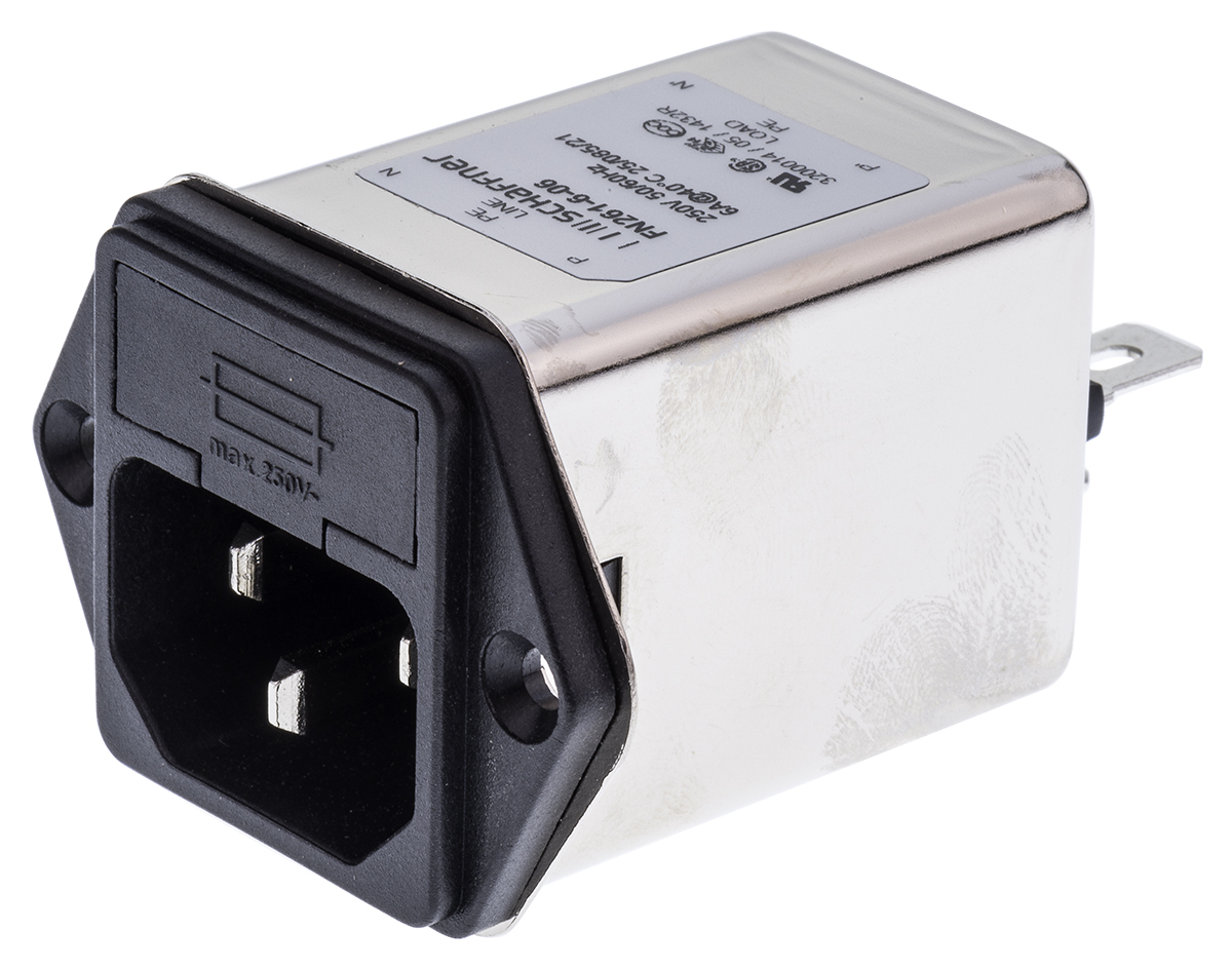 This is Male IEC/EN 60939 IEC Filter Panel Mount 5 x 20mmfastonRated At 6A250 V ac Operating Frequency 0 → 400Hz manufactured by Schaffner. The manufacturer part number is FN261-6-06. Fuses included 1 . The product has a current rating of 6a. The product is available in panel mount configuration. Moreover, the product has a nominal 250 v ac voltage rating. In addition, male is the available "Gender" of the product. A fuse with a 5 x 20mm size. In addition, the height is 46mm. Furthermore, the product is 35mm wide. The product comes in 60.3mm depth. Additionally, it has a/an iec/en 60939 type IEC connector . It allows faston termination method. Furthermore, the product has 0 → 400hz operating frequency range. Quality product with a none switch type.
