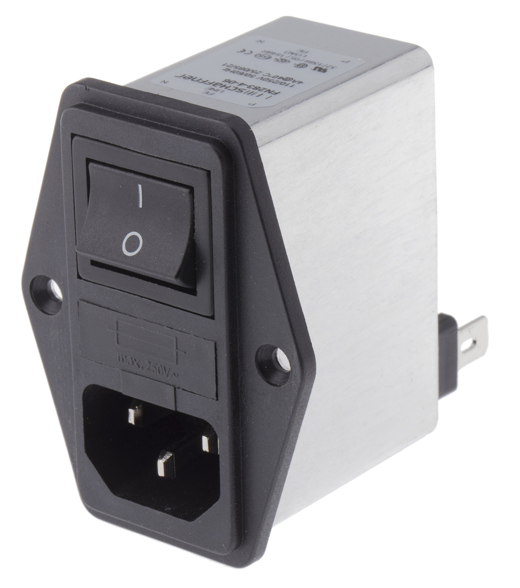 This is Male C14 IEC Filter Flange Mount 5 x 20mmfastonRated At 4.8A250 V ac Operating Frequency 50 → 400Hz manufactured by Schaffner. The manufacturer part number is FN283-4-06. Fuses included 1 . The product has a current rating of 4.8a. The product is available in flange mount configuration. Moreover, the product has a nominal 250 v ac voltage rating. In addition, male is the available "Gender" of the product. A fuse with a 5 x 20mm size. In addition, the height is 65mm. Furthermore, the product is 50mm wide. The product comes in 62mm depth. It allows faston termination method. Furthermore, the product has 50 → 400hz operating frequency range. Additionally, it has a/an c14 type IEC connector . Quality product with a 2 pole switch type.