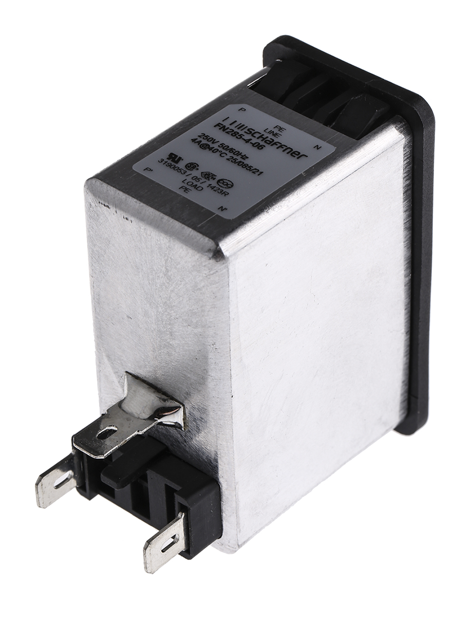 This is Male C14 IEC Filter Snap-In 5 x 20mmfastonRated At 4A250 V ac Operating Frequency 50 → 400Hz manufactured by Schaffner. The manufacturer part number is FN285-4-06. Fuses included 1 . The product has a current rating of 4a. The product is available in snap-in configuration. Moreover, the product has a nominal 250 v ac voltage rating. In addition, male is the available "Gender" of the product. A fuse with a 5 x 20mm size. In addition, the height is 65mm. Furthermore, the product is 32mm wide. The product comes in 65.3mm depth. Additionally, it has a/an c14 type IEC connector . It allows faston termination method. Furthermore, the product has 50 → 400hz operating frequency range. Quality product with a 2 pole switch type.