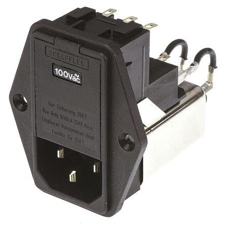 This is Male C14 IEC Filter Flange Mount 6.3 x 32mmSolderRated At 6A250 V ac Operating Frequency 0 → 400Hz manufactured by Schaffner. The manufacturer part number is FN379-6-... Fuses included 2 . The product has a current rating of 6a. The product is available in flange mount configuration. Moreover, the product has a nominal 250 v ac voltage rating. In addition, male is the available "Gender" of the product. A fuse with a 6.3 x 32mm size. In addition, the height is 58mm. Furthermore, the product is 50mm wide. The product comes in 70mm depth. Additionally, it has a/an c14 type IEC connector . It allows solder termination method. Furthermore, the product has 0 → 400hz operating frequency range.