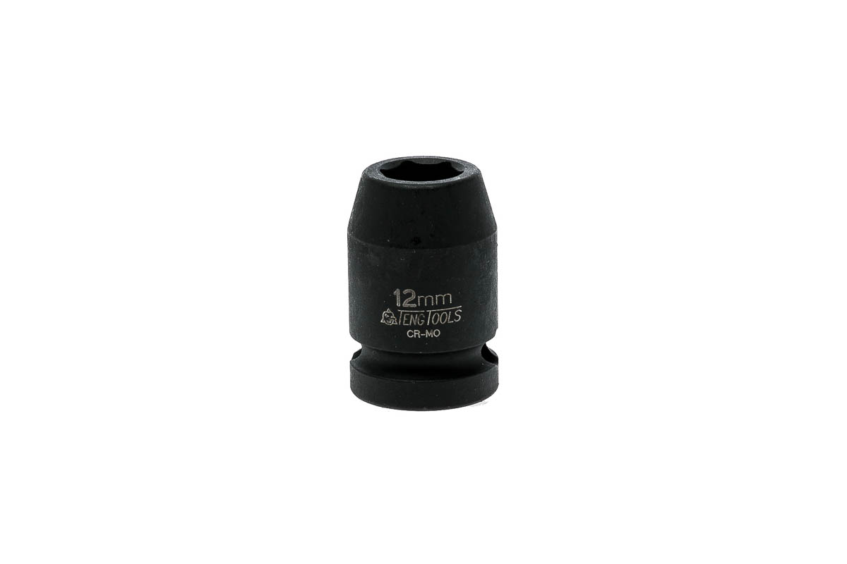 This is 1/2in 12 mm Drive Impact Socket Hexagon 25 mm length manufactured by Teng Tools. The manufacturer part number is 920512N. It is available in metric package. A quality product with a nice blackened finish. The standard impact socket socket offers profound benefits and is well-designed. The product is made from highly stable and reliable chrome molybdenum steel. The socket's size is 12mm. It has an overall length of 25 mm. The product has a drive size of 1/2 in. The product features a square drive. The product consists of 1 pieces.