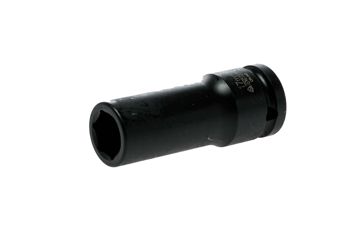 This is 1/2in 17 mm Drive Deep Impact Socket Hexagon 26 mm length manufactured by Teng Tools. The manufacturer part number is 920617N. It is available in metric package. A quality product with a nice blackened finish. The deep impact socket socket offers profound benefits and is well-designed. The product is made from highly stable and reliable chrome molybdenum steel. The socket's size is 17mm. It has an overall length of 26 mm. The product has a drive size of 1/2 in. The product features a square drive. The product consists of 1 pieces.