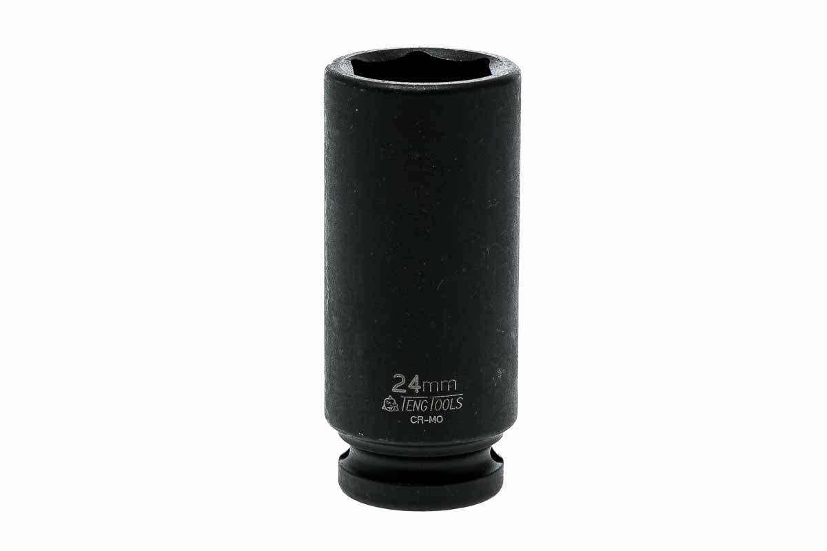 This is 1/2in 24 mm Drive Deep Impact Socket Hexagon 35 mm length manufactured by Teng Tools. The manufacturer part number is 920624N. It is available in metric package. A quality product with a nice blackened finish. The deep impact socket socket offers profound benefits and is well-designed. The product is made from highly stable and reliable chrome molybdenum steel. The socket's size is 24mm. It has an overall length of 35 mm. The product has a drive size of 1/2 in. The product features a square drive. The product consists of 1 pieces.