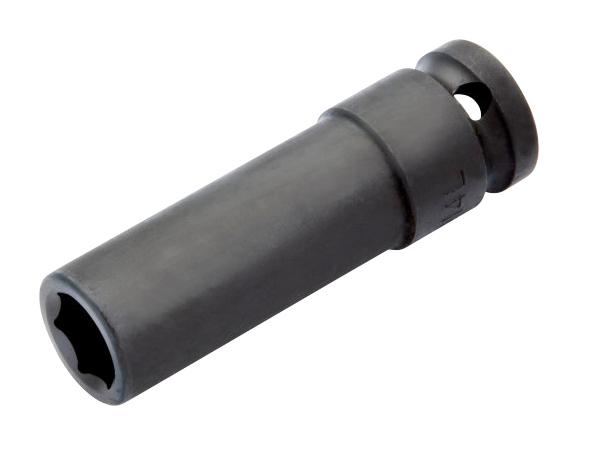 This is 21mm 1/2 in Drive Impact Socket Hexagon 80 mm length manufactured by SAM. The manufacturer part number is NS-21-L. It is available in metric package. A quality product with a nice black oxidized finish. The deep impact socket socket offers profound benefits and is well-designed. The socket's size is 21mm. It has an overall length of 80 mm. The product has a drive size of 1/2 in. The product features a square drive.