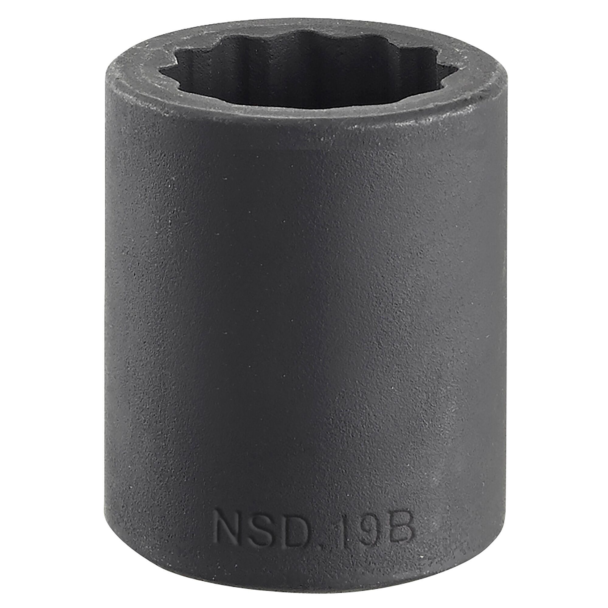 This is 28mm 1/2 in Drive Impact Socket Bi-Hexagon 46 mm length manufactured by Facom. The manufacturer part number is NSD.28B. It is available in metric package. A quality product with a nice manganese phosphate finish. The standard impact socket socket offers profound benefits and is well-designed. The product is made from highly stable and reliable chrome molybdenum steel. The socket's size is 28mm. It has an overall length of 46 mm. The product has a drive size of 1/2 in. The product features a square drive.