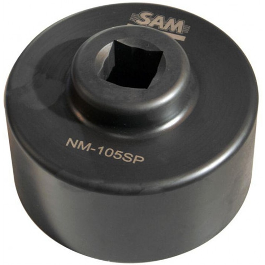 This is 105mm 1 in Drive Impact Socket 81 mm length manufactured by SAM. The manufacturer part number is NM-105SP. It is available in metric package. The impact bit socket socket offers profound benefits and is well-designed. The socket's size is 105mm. It has an overall length of 81 mm. The product has a drive size of 1 in.